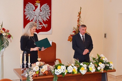 Życzenia i gratulacje złożyli im burmistrz Jan Labus i Kierownik USC Ewa Bronder.