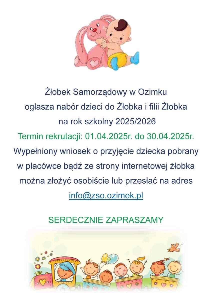 Żłobek Samorządowy w Ozimku ogłasza nabór dzieci do Żłobka i filii Żłobka na rok szkolny 2025/2026