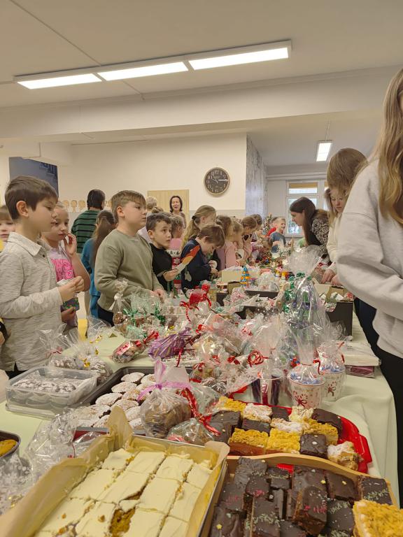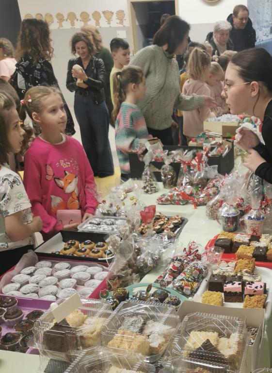 Ogromne podziękowania kierujemy do rodziców, którzy z wielkim zaangażowaniem uczestniczyli w przygotowaniu zarówno ozdób, jak i słodkości – ciast, pierniczków i babeczek. Wasza pomoc sprawiła, że kiermasz był jeszcze bardziej wyjątkowy, a każdy mógł poczuć prawdziwą świąteczną atmosferę.