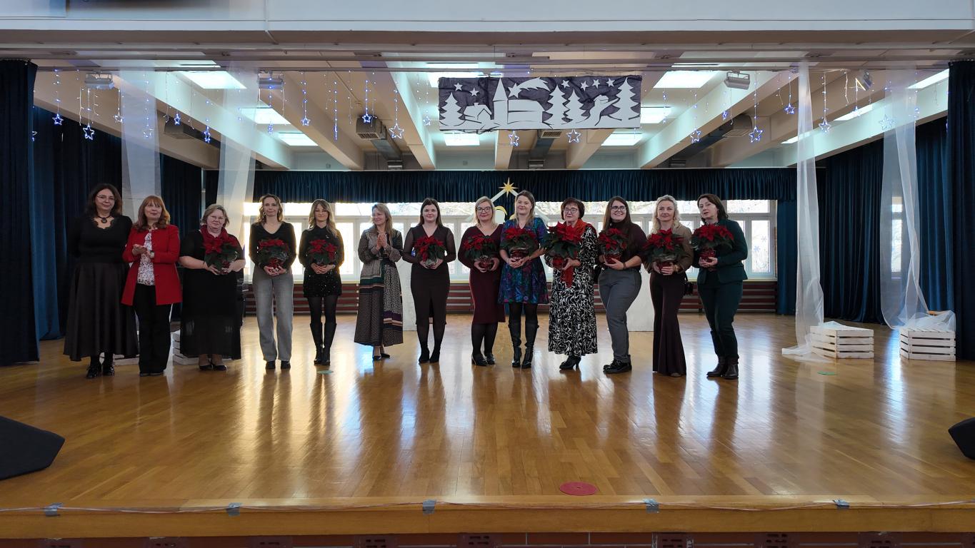 Po koncercie przyszedł czas na szczególne podziękowania i docenienie ogromu pracy nauczycieli, którzy w grudniu tworzyli świąteczną magię w naszej szkole. Pani Dyrektor wraz z Paniami Wicedyrektor wręczyły symboliczne Gwiazdy Betlejemskie tym, którzy z wielkim sercem angażowali się w przygotowanie wydarzeń:
