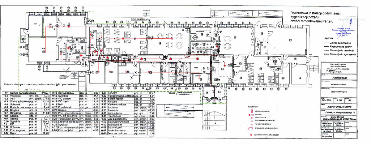 II.1.4) Określenie przedmiotu oraz wielkości lub zakresu zamówienia:1. Przedmiotem zamówienia jest przebudowa i adaptacja pomieszczeń zlokalizowanych na parterze budynku żłobka na pomieszczenia jednego oddziału dla 3 latków oraz zapewnienie ewakuacji osób z pomieszczeń budynku zgodnie z obowiązującymi przepisami p.poż. 2. Opis przedmiotu zamówienia składa się z następujących robót: a) roboty budowlane: -rozebranie elementów starej kotłowni węglowej (piec, czopuch, zbiornik c.w.) -powiększenie otworów okiennych 10sz. i wstawienie nowych okien 11szt. -wymiana i wstawienie stolarki drzwiowej drewnianej 19szt. oraz aluminiowej 4szt. -rozebranie okładzin ściennych z płytek 79,79m2 -rozebranie ścian z cegieł 13,86m3 -uzupełnienie ścian lub zamurowanie otworów 11,41m3 -rozebranie posadzek z płytek oraz tworzyw sztucznych 289,16m2 -wyrównanie podłoży betonowych 289,16m2 -wykonanie izolacji cieplnej, warstwy wyrównawczej oraz zbrojenie siatka 42,51m2 -ułożenie paneli podłogowych na piance 206.61m2 -wykonanie posadzek z płytek ceramicznych wraz z cokolikami 82,55m2 -uzupełnienie i wykonanie nowych tynków 220,3m2 -wykonanie sufitów podwieszanych 42,51m2 -licowanie ścian płytkami 166,78m2 -roboty malarskie 1014,57 m2 -wykonanie przedłużenia tarasu z blachy ryflowanej 7,35mb -wywóz i utylizacja gruzu b) roboty instalacji sanitarnych: -przełożenie szafki hydrantowej wraz z orurowaniem i podłączeniem 1kpl. -demontaż starej instalacji wod-kan 1kpl. -wykonanie rurociągów inst. wodociągowej 20mb wraz z podejściami 10szt. -wykonanie rurociągów inst. kanalizacyjnej 30mb wraz z podejściami 12szt. -montaż umywalki na postumencie wraz z bateria 1kpl. -montaż umywalki wraz z bateria dla niepełnosprawnych 1kpl. -montaż umywalek dla dzieci wraz z bateriami 3kpl. -montaż zlewu porządkowego z bateria 1kpl. -montaż zlewozmywaka z baterią 1kpl. -montaż ustępu typu kompakt 1kpl. -montaż ustępu dla niepełnosprawnych 1kpl -montaż ustępu dla dzieci 2kpl. -wykonanie rurociągu c.o. z podejściami 25mb -montaż grzejników stalowych z głowicami termostatycznymi 5kpl. -przestawienie grzejnika stalowego 1kpl. -likwidacja starego orurowanie 1kpl. -wywóz i utylizacja materiałów z rozbiórki 1kpl. c) roboty instalacji elektrycznych: -wykucie bruzd 2125mb. -ułożenie przewodów YDY 2125mb. -montaż puszek instalacyjnych 79szt -montaż łączników 34szt. -montaż gniazd 45szt. -montaż tablic rozdzielczych 3kpl. -montaż zabezpieczeń 2kpl. -montaż opraw oświetleniowych 77kpl. -montaż opraw ewakuacyjnych 52kpl. -wykonanie badań i pomiarów 1kpl. -montaż centrali oddymiania 1kpl. -montaż czujek pożarowych 8kpl. -montaż czujek dymu 11kpl. -montaż przewodów 170mb -podłączenie do istniejącej instalacji oddymiania i p.poż 1kpl. 3. Szczegółowy opis zawiera dokumentacja projektowa w części odnoszącej się do przedmiotu zamówienia (tj. branża sanitarna, budowlana i elektryczna) oraz specyfikacje techniczne wykonania i odbioru robót, które stanowią integralną cześć niniejszej SIWZ. 4. Do Specyfikacji zostały załączone przedmiary robót jako materiał pomocniczy do wykorzystania według uznania Wykonawcy. 5. Załączony przedmiar robót określa jedynie orientacyjny zakres robot przewidzianych do wykonania zamówienia, ułatwiając tym samym skalkulowanie ceny. Przedmiar nie stanowi podstawy do późniejszego rozliczenia umowy, ponieważ przyjęto w niej zasadę wynagrodzenia ryczałtowego, tj. cena umowy nie podlega zmianie w trakcie realizacji zamówienia. W cenie przedmiotu zamówienia należy uwzględnić wszystkie roboty, również nie ujęte w przedmiarze robót, a wynikające ze specyfiki i technologii robót. 6. Umożliwia się, aby Wykonawca, na własny koszt, dokonał wizji lokalnej terenu przyszłej inwestycji. W tym celu należy skontaktować się z Panem Jackiem Gintrem tel. 77 46 22 859 7. Wykonawca zobowiązany jest do udzielenia gwarancji na przedmiot umowy wynoszącej co najmniej 36 miesięcy, jednak nie więcej 60 miesięcy. 8. W przypadku wystąpienia w dokumentacji projektowej lub STWiOR materiałów i urządzeń, przy których są podane nazwy producenta, znaki towarowe lub pochodzenie, Zamawiający dopisuje do nich wyrazy lub równoważny. Jeżeli w dokumentacji projektowej lub specyfikacji technicznej wykonania i odbioru robót zostały wskazane znaki towarowe, patenty oraz pochodzenie urządzeń i materiałów - należy je traktować jako podane przykładowo i pomocniczo do sporządzania oferty. Jednakże proponowane i kalkulowane przez Wykonawców w ofercie urządzenia i materiały muszą posiadać nie gorsze parametry techniczne i jakościowe od opisanych w projekcie. 9. Operowanie przykładowymi nazwami producenta ma jedynie na celu doprecyzowanie poziomu oczekiwań zamawiającego w stosunku do określonego rozwiązania. Posługiwanie się nazwami producentów/produktów ma wyłącznie charakter przykładowy. Zamawiający, wskazując oznaczenie konkretnego producenta (dostawcy) lub konkretny produkt przy opisie przedmiotu zamówienia, dopuszcza jednocześnie produkty równoważne o parametrach jakościowych i cechach użytkowych co najmniej na poziomie parametrów wskazanego produktu, uznając tym samym każdy produkt o wskazanych lub lepszych parametrach. 10. Rozwiązania równoważne: a) Wszędzie tam, gdzie przedmiot zamówienia został opisany poprzez wskazanie znaków towarowych, patentów lub pochodzenia lub norm, aprobat, specyfikacji technicznych i systemów odniesienia, o których mowa w art. 30 ust. 1-3 Ustawy, Zamawiający dopuszcza oferowanie przez Wykonawcę materiałów lub rozwiązań równoważnych w stosunku do opisanych w dokumentacji projektowej, pod warunkiem, że nie obniżą określonych w dokumentacji projektowej standardów, będą posiadały wymagane odpowiednie atesty, certyfikaty lub dopuszczenia oraz zapewnią wykonanie zamówienia zgodnie z oczekiwaniami i wymaganiami Zamaw