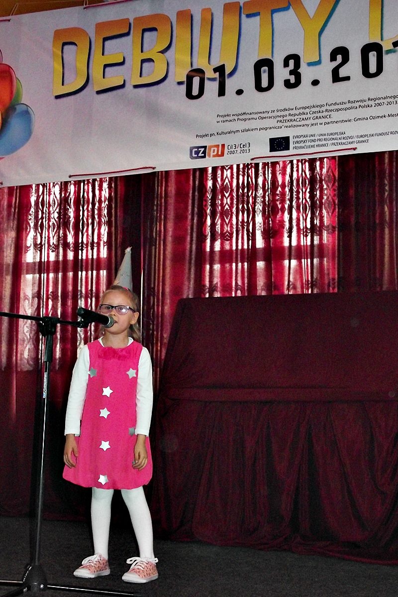 W dniu 1 marca br. w Domu Kultury w Ozimku miało miejsce wydarzenie pn. „Debiuty dzieci”, współfinansowane przez Unię Europejską ze środków Europejskiego Funduszu Rozwoju Regionalnego w ramach Programu Operacyjnego Współpracy Transgranicznej Republika Czeska-Rzeczpospolita Polska 2007-2013. PRZEKRACZAMY GRANICE.