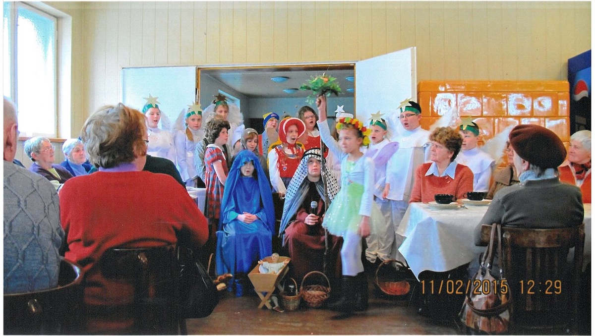 Ten czas wspólnego bycia razem umilili uczniowie Szkoły Podstawowej, a tak właściwie „mali aktorzy”, którzy wcielili się w bajkowe postacie tj.: Czerwony Kapturek, Calineczka, Stary Rybak, Dziewczynka z zapałkami, Smerf, Jaś i Małgosia, Pinokio, Pszczółka Maja oraz Kopciuszek odgrywając naszym zacnym parafianom „Betlejemską dobranockę”. Nie zabrakło też piosenki dedykowanej Babciom i Dziadkom.