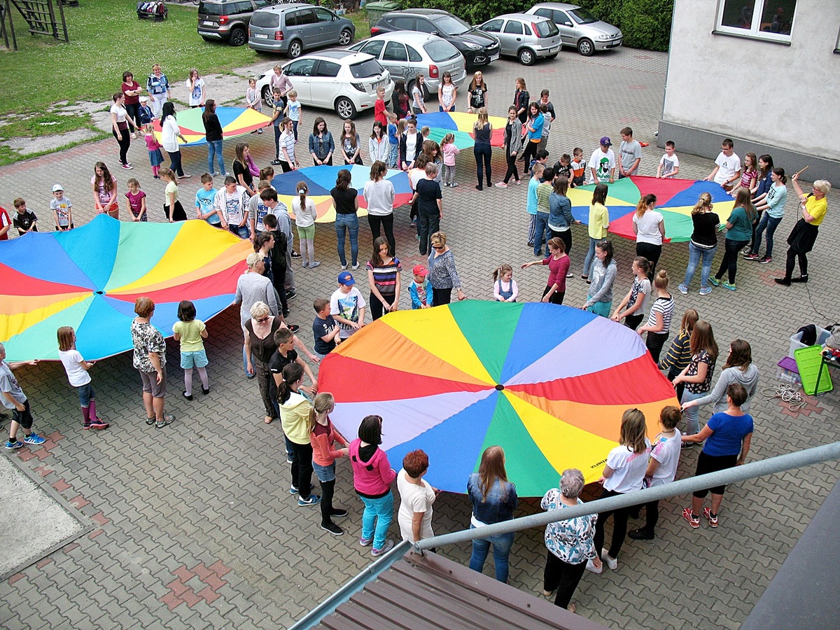 19 maja gościliśmy w naszej szkole seniorów oraz uczniów gimnazjum GZS. Celem spotkania był najlepszy dla każdego taniec pod chmurką z wykorzystaniem chust animacyjnych Klanzy.