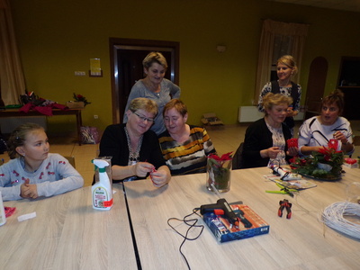 W warsztatach florystycznych zorganizowanych przez Sołtysa i Radę Sołecką, które miały miejsce 16 grudnia uczestniczyło ok. 26 osób. Tematem przewodnim były Święta Bożego Narodzenia i dekoracje z nimi związane. Dumne, uśmiechnięte i w świątecznym nastroju panie wykonały piękne dzieła pod czujnym okiem florystyki Pani Małgorzaty Karpińskiej. Własnoręcznie wykonane prace będą stroić domostwa uczestniczek spotkania, którym zapewniono również słodki poczęstunek.