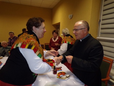 Po odmówionym błogosławieństwie zgromadzeni przystąpili do łamania się opłatkiem oraz składania sobie życzeń bożonarodzeniowo-noworocznych.