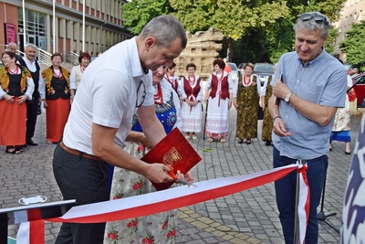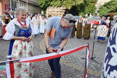 Oficjalnego przecięcia wstęgi dokonali Burmistrz Ozimka Mirosław Wieszołek, Dyrektor Muzeum Wsi Opolskiej Jarosław Gałęza oraz Renata Janik, która ozdobiła tradycyjnym opolskim wzorem kroszonkę.