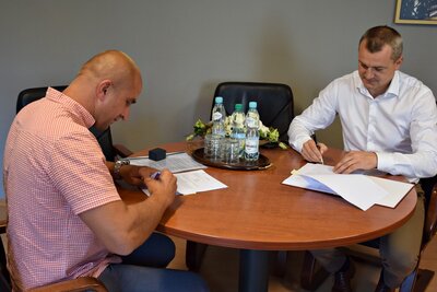 14 września br. Burmistrz Ozimka Mirosław Wieszołek oraz Łukasz Mikoda reprezentujący firmę Protect Building z Lędzin podpisali umowę na zadanie pn. „Modernizacja dróg gminnych ul. Waryńskiego i ul. Jelenia w m. Ozimek (zaprojektuj i wybuduj)”.
