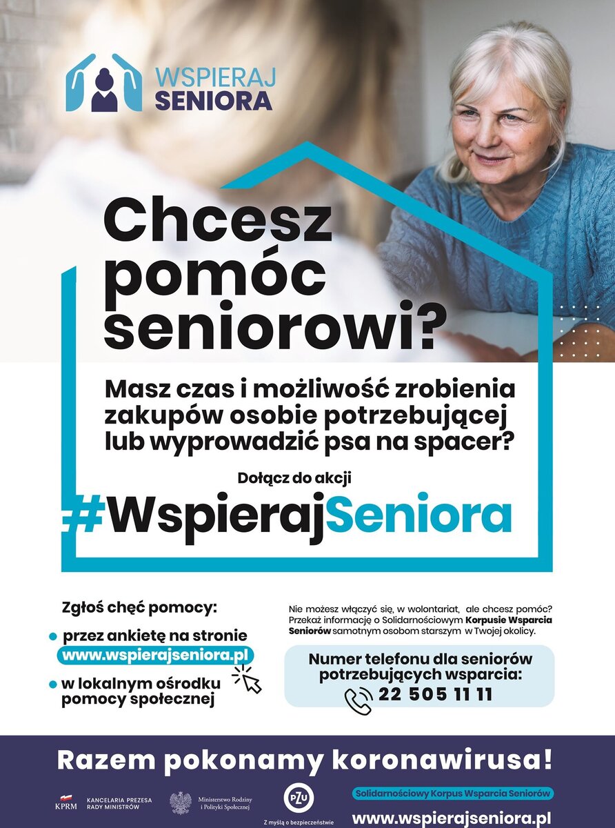 W związku z panującą sytuacja epidemiologiczną związaną z wirusem Covid-19 poszukujemy osób chętnych do pomocy osobom starszym w ramach rządowego programu „Wspieraj Seniora”.