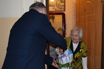 Zgodnie z tradycją - jak co roku Burmistrz Ozimka Mirosław Wieszołek oraz Inspektor ds. wojskowości i OC Zbigniew Koziarz odwiedzili kombatantów z naszej gminy, przekazując im życzenia z okazji zbliżających się Świat Bożego Narodzenia oraz paczki świąteczne z gminy i Zarządu Wojewódzkiego ZKRPiBWP w Opolu.