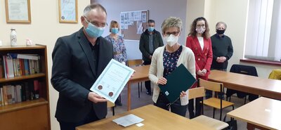 Uroczystość nadania śp. Bernardowi Materne tytułu "Zasłużony dla Krasiejowa"