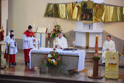 W Ozimku zgodnie z tradycją obchody rozpoczęły się od mszy św. dziękczynnej odprawionej w intencji Ojczyzny oraz ozimskich hutników. Proboszcz ks. Marian Demarczyk podziękował wszystkim zgromadzonym – w szczególności przedstawicielom władz gminnych i powiatowych - nawiązując podczas eucharystii do ważnej roli Najświętszej Maryi Królowej Polski.