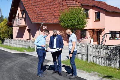 Dnia 10.05.2021 r. dokonano odbiorów końcowych na ul. Leśnej w Mnichusie oraz ul. Polnej w Chobiu, w którym uczestniczyli Burmistrz Ozimka Mirosław Wieszołek, Łukasz Mikoda właściciel głównego wykonawcy obu inwestycji - Protect Building z Lędzin oraz Sołtys Wsi Chobie Magdalena Panitz.