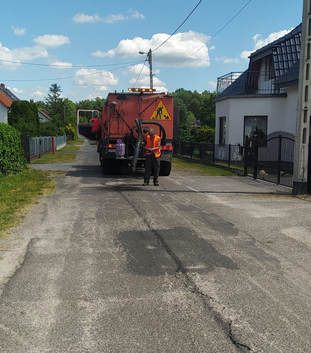 Prace już trwają, ponadto wykonawca realizuje także zadania z zakresu remontów cząstkowych dróg z masy bitumicznej przy użyciu patchera.