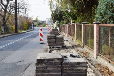W ramach robót, które realizuje Zarząd Dróg Wojewódzkich zostanie wyremontowane 427 mb chodnika. Obecnie trwa demontaż istniejących płyt chodnikowych.