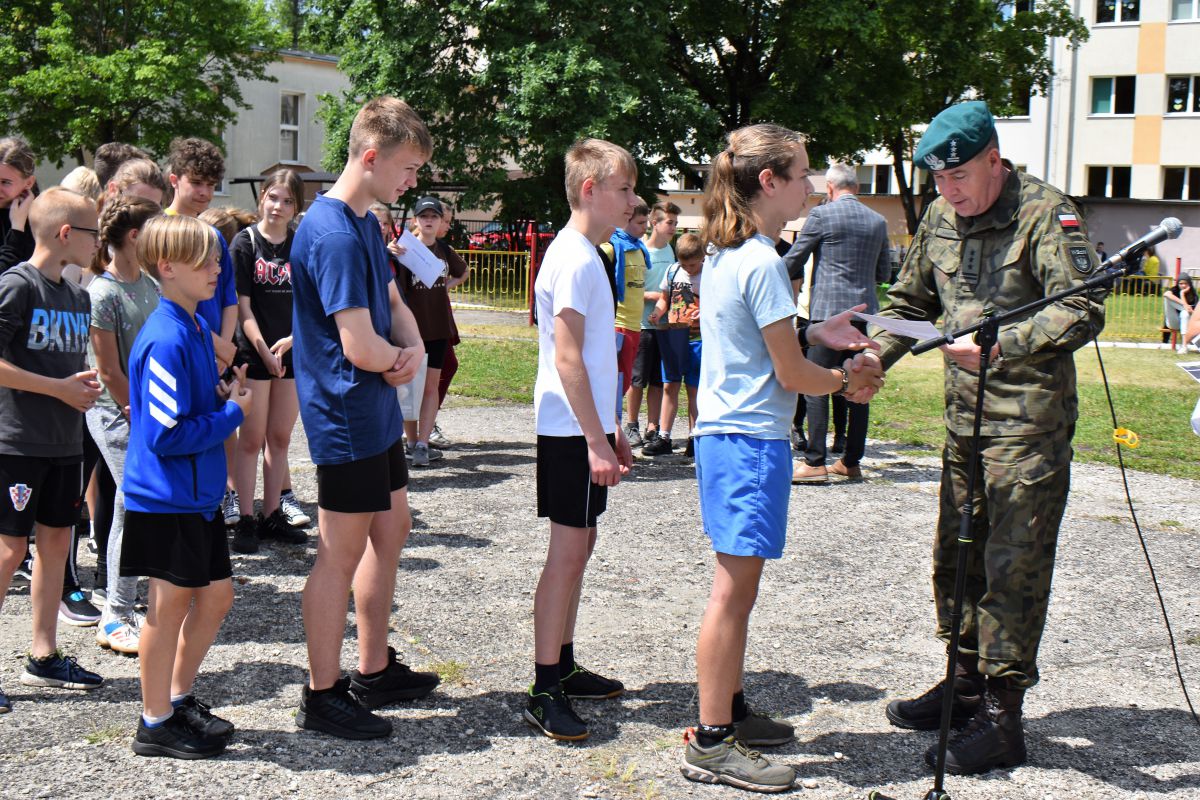 Na boisko SP nr 1 przyjechali także żołnierze z 10. Opolskiej Brygady Logistycznej, którzy przygotowali dla uczestników pokaz sprzętu wojskowego. Zgromadzeni mogli także uczestniczyć w zajęciach udzielania pierwszej pomocy przedmedycznej.