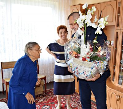 Dnia 8 września br. Burmistrz Ozimka Mirosław Wieszołek wspólnie z Kierownikiem Urzędu Stanu Cywilnego w Ozimku Ewą Bronder odwiedzili Panią Genowefę Bekus, która obchodziła 100 rocznicę urodzin. Złożyli jej serdeczne gratulacje, życząc dużo zdrowia, pomyślności oraz jeszcze wielu chwil wśród najbliższych. Jednocześnie wręczyli jubilatce list gratulacyjny oraz piękny kosz upominkowy.