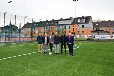 Uroczystego przecięcia wstęgi dokonali m.in. Burmistrz Ozimka Mirosław Wieszołek, Dyrektor MOSiR w Ozimku Arkadiusz Banik oraz Michał Nowok - przedstawiciel głównego wykonawcy TOP SPORT z Bielsko Białej.