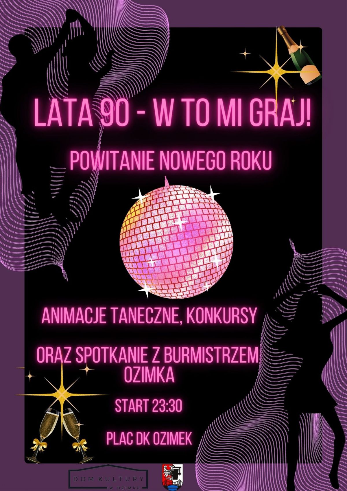 Świetna zabawa zapowiada się w sylwestrowy wieczór na placu przed ozimskim Domem Kultury. Rozpocznie się o 23.30 a motywem przewodnim będzie pop kultura, głównie muzyka z lat 90.tych. Tak więc każdy, kto tylko przyjdzie pod DK będzie mógł wziąć udział w konkursach (z nagrodami oczywiście) wiedzy o tamtym okresie. Pytania mają dotyczyć przede wszystkim muzyki krajowej i zagranicznej, ale nie tylko, gdyż także na przykład kinematografii.
