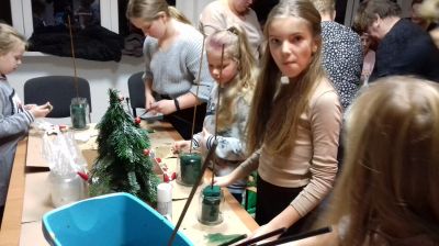 Podczas pierwszych warsztatów - rękodzieła świątecznego pod okiem florystki Katarzyny Sklorz wykonywano wieńce adwentowe. Natomiast dzieci, które przybyły z rodzicami, wykonywały piękne choinki przyozdobione świątecznymi elementami. Każda dekoracja była wyjątkowa