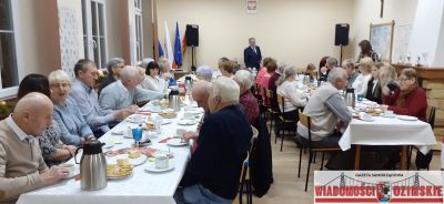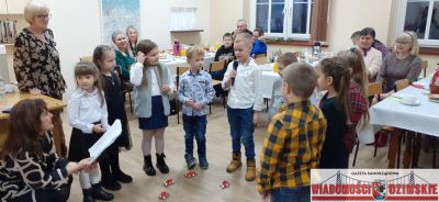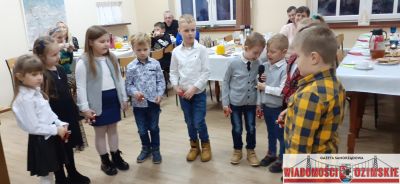 W trakcie słuchania można było częstować się kołoczem i kawą, a później pyszną grochówką i kanapkami. O poczęstunek i świąteczny wystrój sali zadbały panie z koła DFK: Urszula Bok, Ilona Feliks, Sylwia Szubert, Edyta Wer, zaś pyszną grochówkę zaserwowała restauracja El Gusto. Oprawę muzyczną zapewnił Marcin Szubert, za co składamy serdeczne podziękowania. Zarząd DFK dziękuje również paniom, które w sobotnie przedpołudnie sprzątały świetlicę w starej szkole. Spotkanie noworoczne upłynęło w miłej atmosferze i było okazją do rozmów, wspomnień i wspólnego kolędowania.