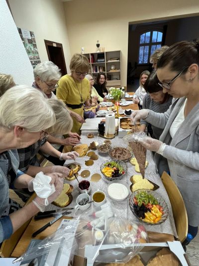 Na zakończenie wszystkie panie wykonały mały torcik w kształcie serca oraz tarty owocowe, które można było zabrać ze sobą i poczęstować nimi domowników. Zajęcia kulinarne trwały cztery godziny, a smaczny gulasz, podany z upieczonym poza świetlicą chlebem, był daniem finalnym. Jesteśmy pełni podziwu dla pani Beaty za przygotowanie produktów do tak bogatej karty dań dla prawie dwudziestu osób oraz zgłębianie tajników kulinarnych.