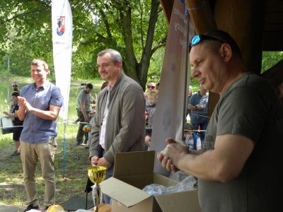 Przy okazji jubileuszu nie mogło zabraknąć podziękowań dla organizatorów. Burmistrz Mirosław Wieszołek wręczył podziękowanie dla Koła PZW Małapanew w Ozimku na ręce głównego organizatora zawodów Wiesława Misia. Ten z kolei przekazał podziękowania ich wieloletnim, sprawdzonym sponsorom.