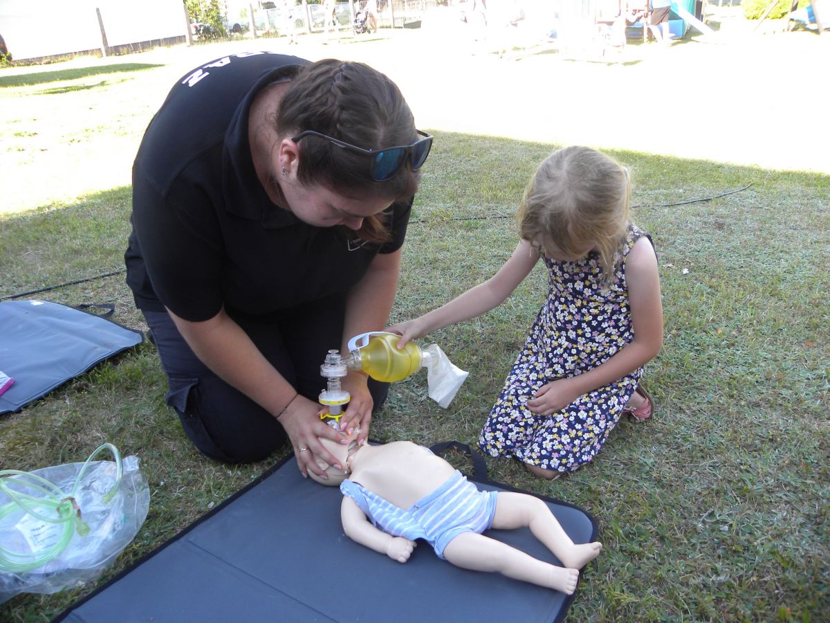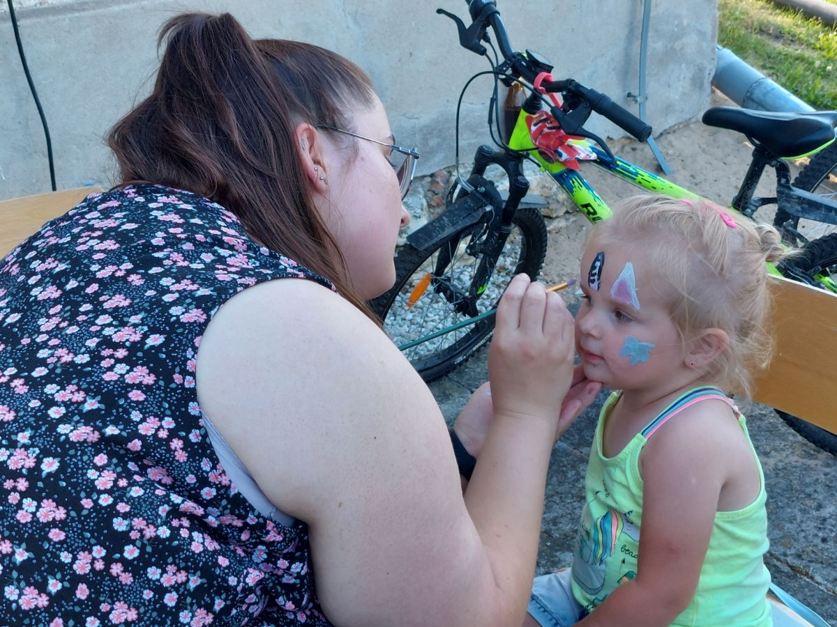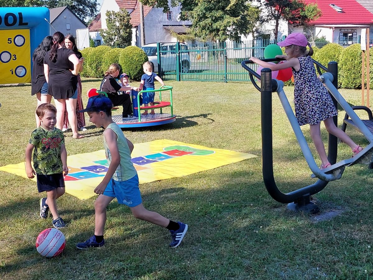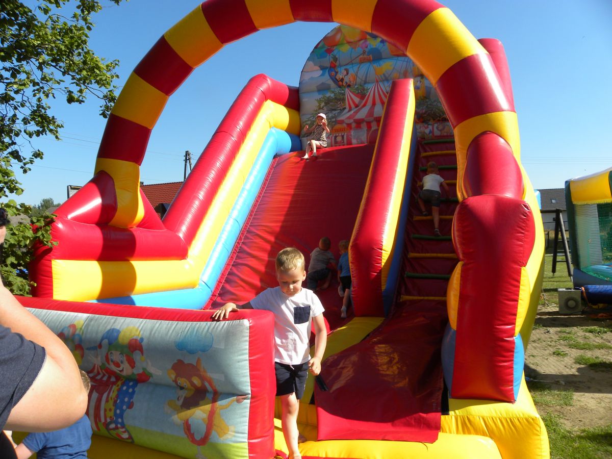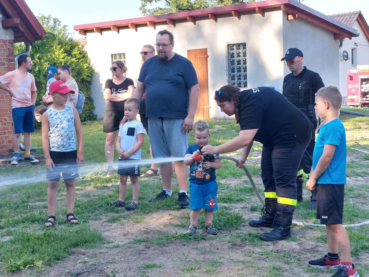 Na dzieci czekały liczne atrakcje wokół namiotu: od darmowej waty cukrowej i popcornu, poprzez oblegane przez najmłodszych dmuchańce, malowanie buziek, po pokazy strażackie. Drużyna strażaków OSP Chobie zaprezentowała dzieciom swój wóz bojowy, dała pokaz ratownictwa medycznego oraz rozwinęła węże i pozwoliła dzieciom trafiać do celu wodą z prądownicy. Chętnych, zwłaszcza wśród chłopców, nie brakowało. Po tych atrakcjach, na boisku za świetlicą odbyły się sportowe gry i zabawy dla dzieci i ich rodziców, a wesoła zabawa trwała do samego zmroku.