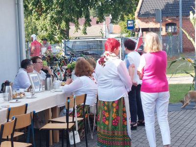 Na placu festynowym za świetlicą wiejską odbyła się biesiada, rozpoczęta wniesieniem korony żniwnej oraz powitaniem mieszkańców i gości przez sołtys Edytę Czaplik. Zanim przystąpiono do dzielenia chleba, zespół folklorystyczny Dzióbki pożegnał symbolicznie swoją wieloletnią szefową Erykę Świerc oraz zmarłego tuż przed dożynkowym świętem mieszkańca wsi.