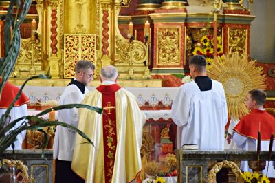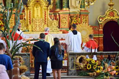 W niedzielę, dnia 1 października odbyła się w kościele parafialnym w Krasiejowie uroczysta suma dożynkowa. W asyście ks. Józefa Gorki i sztandarów starostowie dożynek Michał i Sandra Pykowie oraz zaproszeni gości weszli do kościoła, gdzie oczekiwała na zebranych misternie wykonana korona. Starostowie przekazali na ręce proboszcza chleb dożynkowy i kosz z winogronami. W swej homilii duszpasterz zwrócił uwagę na wartość chleba i szacunek do niego.