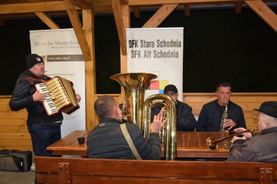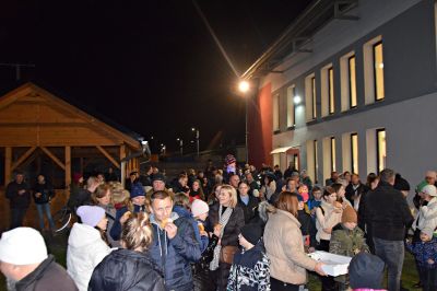W kolejnym punkcie zaproszono wszystkich do częstowania się pysznymi rogalami świętomarcińskimi i ciepłymi napojami. Dla najmłodszych były gry i zabawy oraz słodycze, a dla dorosłych przygotowano biesiadę z orkiestrą dętą.