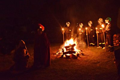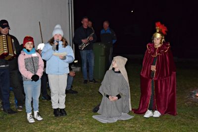 Głowna część imprezy odbyła się na placu za remizą OSP, gdzie mali aktorzy, których przygotowała Anna Spyra (nauczyciel SP2 w Ozimku) przedstawili scenę z życia patrona, w której zgodnie z legendą podzielił się płaszczem z żebrakiem – jako symbol wielkiego miłosierdzia.