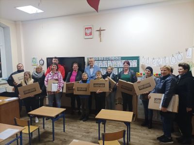 Na przełomie października i listopada br. w Gminie Ozimek, w roku szkolnym 2023-24 przekazano uczniom klas czwartych 140 komputerów na łączną wartość 406 564,20 zł. Oficjalnego przekazania dokonał Burmistrz Ozimka Mirosław Wieszołek.