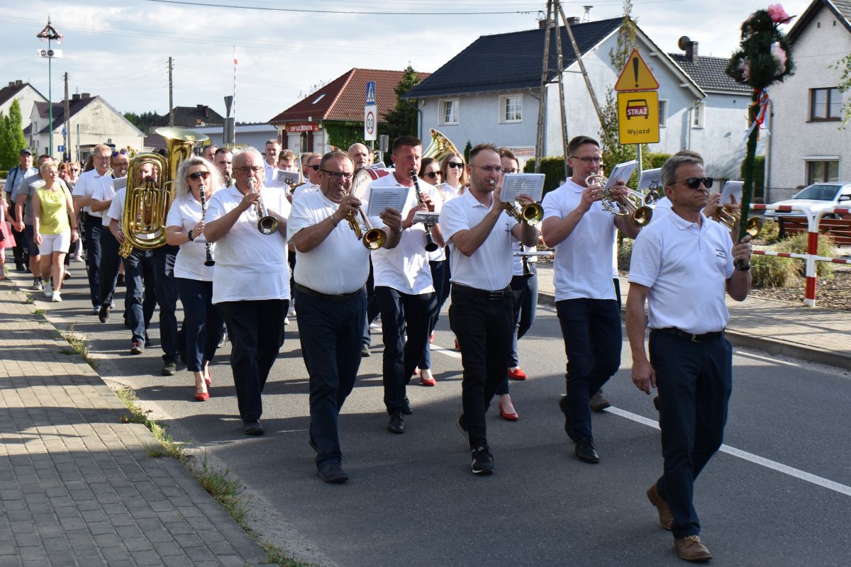 W resturacyjnym ogródku czekały na mieszkańców stoły biesiadne oraz poczęstunek. Sołtyska jeszcze raz wszystkich oficjalnie przywitała, w szczególności księdza proboszcza Krzysztofa Matyska, a także podziękowała za gościnę właścicielom Miejscowej Klapsznity - Jolancie i Michałowi Rudolfom. Słowa podziękowania zostały również skierowane do członków rady sołeckiej oraz wszystkim darczyńcom, którzy wsparli organizację festynu. Orkiestra Dęta Szczedrzyk uraczyła zgromadzonych koncertem ze znanymi przebojami, dzięki któremu kolejny festyn stawiania Drzewka Majowego można zaliczyć do udanych.