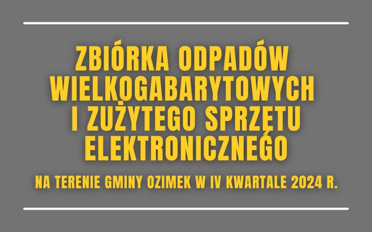 Zbiórka odpadów wielkogabarytowych i zużytego sprzętu elektronicznego na terenie Gminy Ozimek w IV kwartale 2024 r.