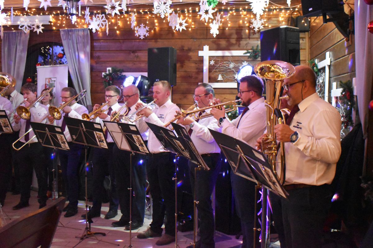Spotkanie dedykowane starszym mieszkańcom gminy odbyło się w JuraParku w Krasiejowie, a gości przywitała Orkiestra Dęta Szczedrzyk pod batutą Marka Kulika, która dała niepowtarzalny koncert. Muzycy zaprezentowali szeroki repertuar, od klasyki po współczesne aranżacje, demonstrując mistrzowskie opanowanie instrumentów. Dynamika występu w połączeniu z wokalem kilku członków grupy zapewniły niezapomniane muzyczne wrażenia.