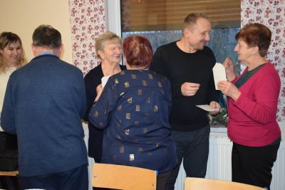 Minutą ciszy uczczono pamięć byłego proboszcza ks. Henryka Okularczyka oraz zmarłych w okresie mijającego roku mieszkańców. Życzenia radosnych Świąt Bożego Narodzenia oraz zdrowia i pomyślności w Nowym Roku przekazali obecnym: zastępca Burmistrza Ozimka Andrzej Brzezina i radny powiatu opolskiego Antoni Gryc, po czym wszyscy złożyli sobie świąteczno-noworoczne życzenia, dzieląc się wzajemnie opłatkiem. Proboszcz ks. Janusz Konofalski odmówił modlitwę przed posiłkiem, złożonym z tradycyjnych wigilijnych potraw. Po nim był poczęstunek ciastem i kawą, długie rozmowy przy wigilijnym stole, a zespół „Dzióbki” uprzyjemniał czas i tworzył przedświąteczny nastrój kolędami i piosenkami o tematyce bożonarodzeniowej.