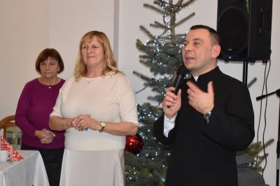 Modlitwę odmówił ks. Łukasz Szuster, który pobłogosławił opłatki, którymi następnie wszyscy się dzielili składając sobie życzenia.
