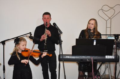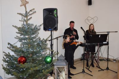 Rodzinny tercet – Antonia, Dominika i Łukasz Nowakowie zachwycili wypełnioną salę niepowtarzalną muzyczną oprawą. Zaprezentowali kolędy i piosenki w języku polskim i niemieckim, wprowadzające świąteczny klimat. Cudowny wokal i ogromny talent instrumentalny zauroczyły publiczność.