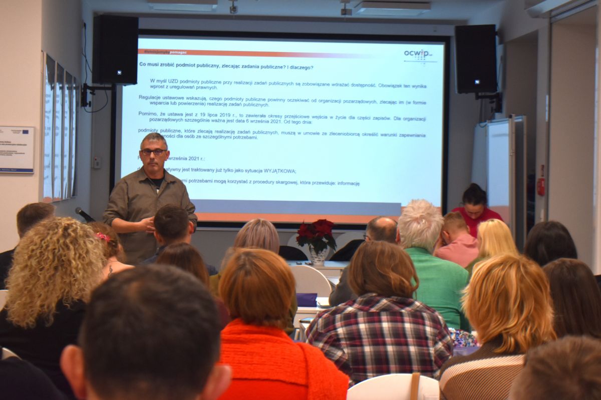 Podczas części szkoleniowej skupiono się na logice projektowej, omawiano m.in. etapy konstruowania oferty konkursowej, planowanie budżetu czy formułowanie rezultatów i określanie sposobów ich mierzenia. Eksperci z OCWIP zaprezentowali także szereg dobrych i złych praktyk, z którymi spotkali się na przestrzeni swojego kilkunastoletniego doświadczania. Wydarzenie zakończono dyskusją, podczas której prowadzący odpowiadali na pytania uczestników z rozmaitych zagadnień dotyczących funkcjonowania organizacji pozarządowych.