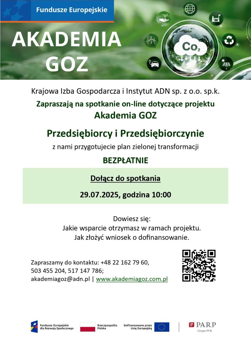 Zaproszenie na spotkanie on-line dotyczące projektu Akademia GOZ