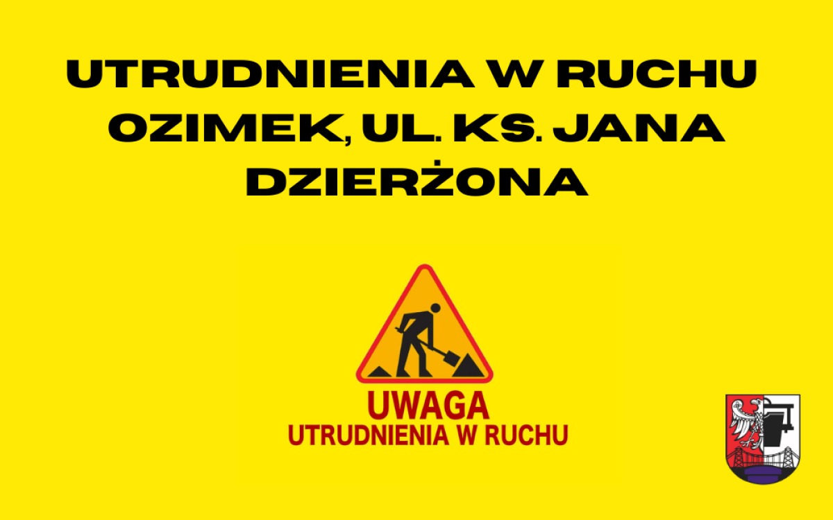 W związku z prowadzonymi pracami remontowymi na ul. ks. J. Dzierżona w Ozimku informujemy, że w dniu dzisiejszym wystąpią utrudnienia w ruchu drogowym na całym odcinku ulicy.