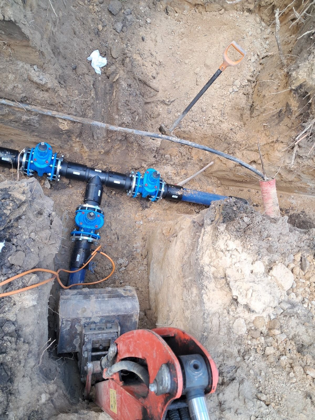- Przełączenie budynków - przełączono 10 budynków mieszkalnych na nową sieć, a także zainstalowano indywidualne zasuwy na każdym przyłączu, co daje możliwość odcięcia dopływu wody do poszczególnych gospodarstw domowych.