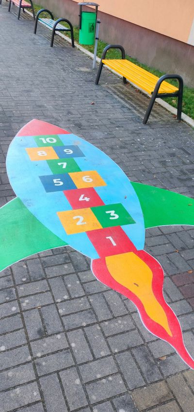 • zestaw gier podwórkowych wykonanych z trwałego materiału termoplastycznego.