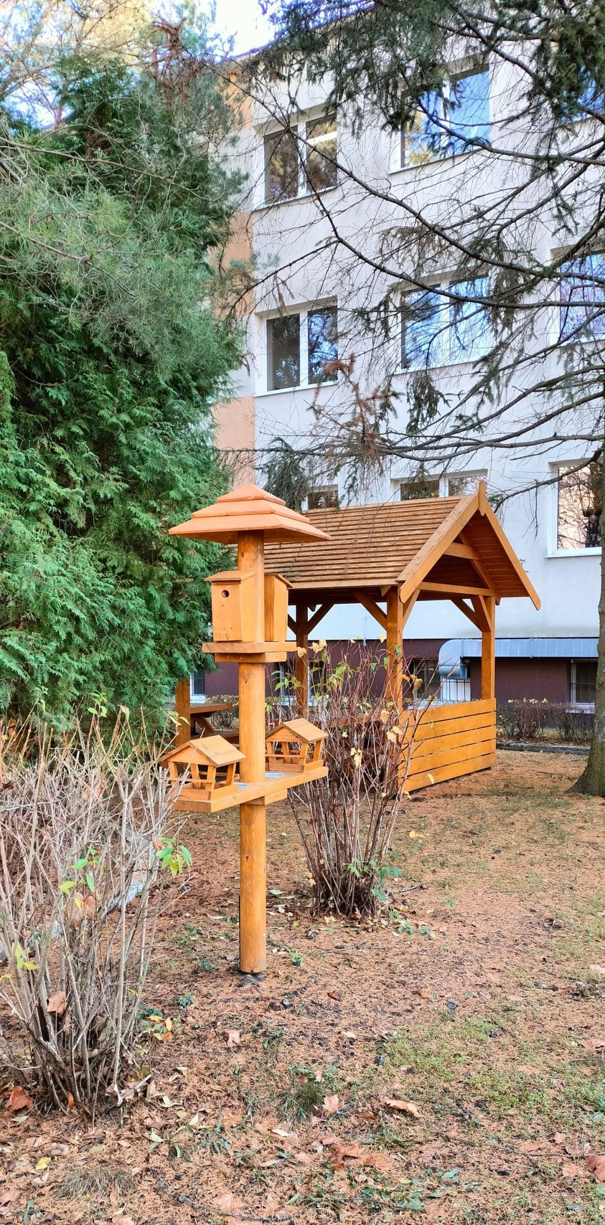 • wiatę edukacyjną wyposażoną w ławostoły, ptasznik i stację meteorologiczną,