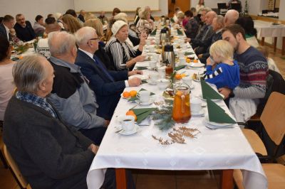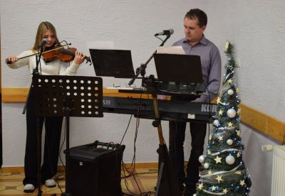Popołudnie upłynęło w ciepłej, przedświątecznej atmosferze – przy rozmowach, kawie, herbacie, poczęstunku oraz wspólnej kolacji z wigilijnym barszczem i domowymi krokietami. Muzyczną oprawę stworzył Rajmund Wiecha z córką Weroniką, którzy grą na organach i skrzypcach oraz śpiewem polskich i niemieckich piosenek wprowadzili wszystkich w adwentowy nastrój.