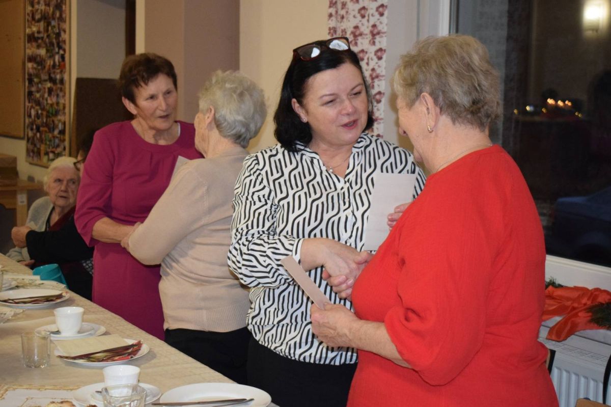 Uczestniczyli w nim również zaproszeni goście: Marcin Widera - Zastępca Burmistrza Ozimka, radny powiatowy Antoni Gryc oraz proboszcz parafii w Dylakach ks. Janusz Konofalski, którzy złożyli wszystkim świąteczno-noworoczne życzenia. Zastępca Burmistrza przekazał w prezencie kalendarze ścienne Gminy Ozimek na 2026 rok, wraz z serdecznymi życzeniami od Burmistrza Ozimka Mirosława Wieszołka, a po odczytaniu Ewangelii oraz modlitwie odmówionej przez księdza proboszcza, wszyscy zasiedli do wigilijnej wieczerzy złożonej z tradycyjnych potraw: czerwonego barszczu, ziemniaków, smażonej ryby, kapusty i kompotu.
