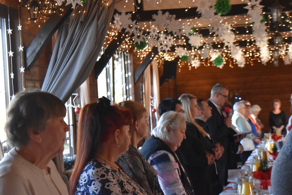 Uczestnicy spotkania podzielili się opłatkiem i zasiedli do wspólnej wigilijnej wieczerzy, spędzając czas w ciepłej, świątecznej atmosferze. Całość wydarzenia uświetnił występ zespołu Heidi z Ozimka, który wprowadził wszystkich w prawdziwie bożonarodzeniowy nastrój.