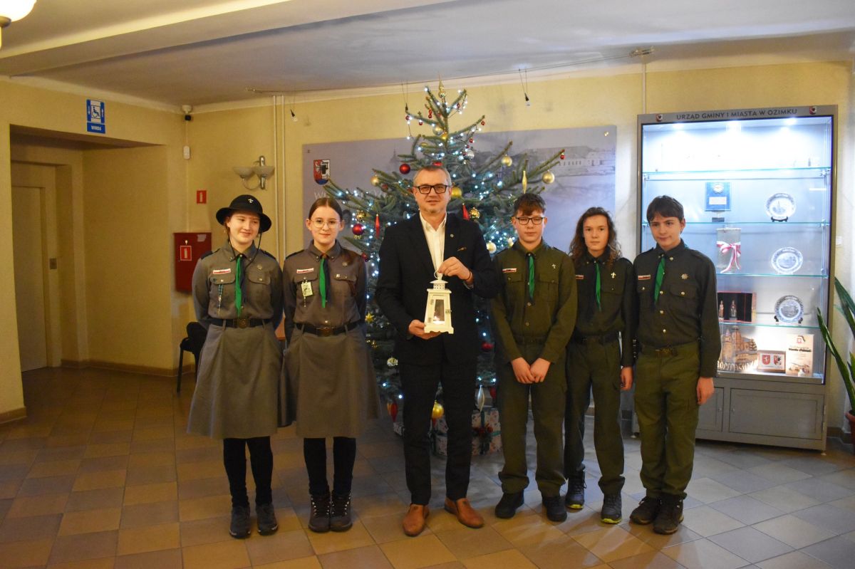 Harcerki i harcerze przekazali dziś Betlejemskie Światełko Pokoju Burmistrzowi Ozimka. Ten wyjątkowy płomień, zapalony w Grocie Narodzenia Pańskiego w Betlejem, co roku wędruje przez kraje i miasta, niosąc ze sobą przesłanie pokoju, nadziei i braterstwa.