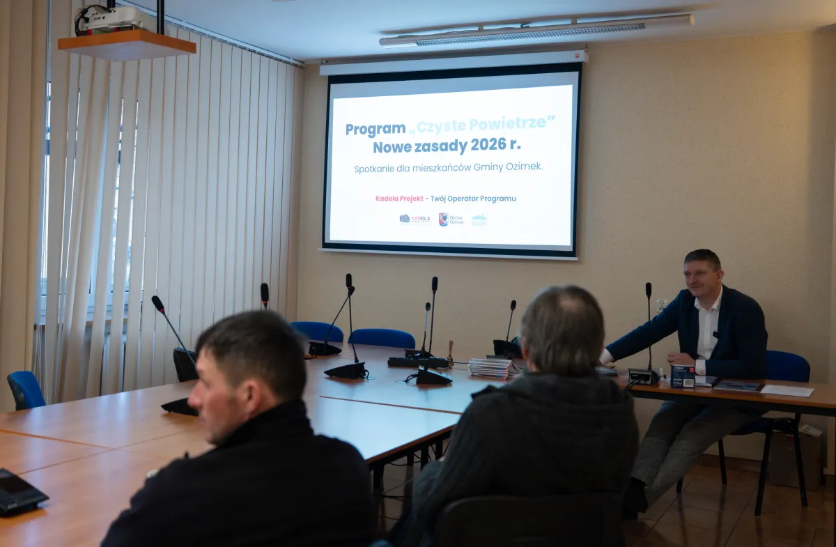 Spotkanie poprowadził Krzysztof Adamiec z firmy Cadela Project Sp. z o.o., która pełni w naszej gminie rolę operatora programu. Podczas wykładu mieszkańcy poznali najważniejsze założenia programu oraz praktyczne kroki, jakie należy podjąć, aby uzyskać dofinansowanie m.in. na wymianę tzw. „kopciucha” czy docieplenie domu.